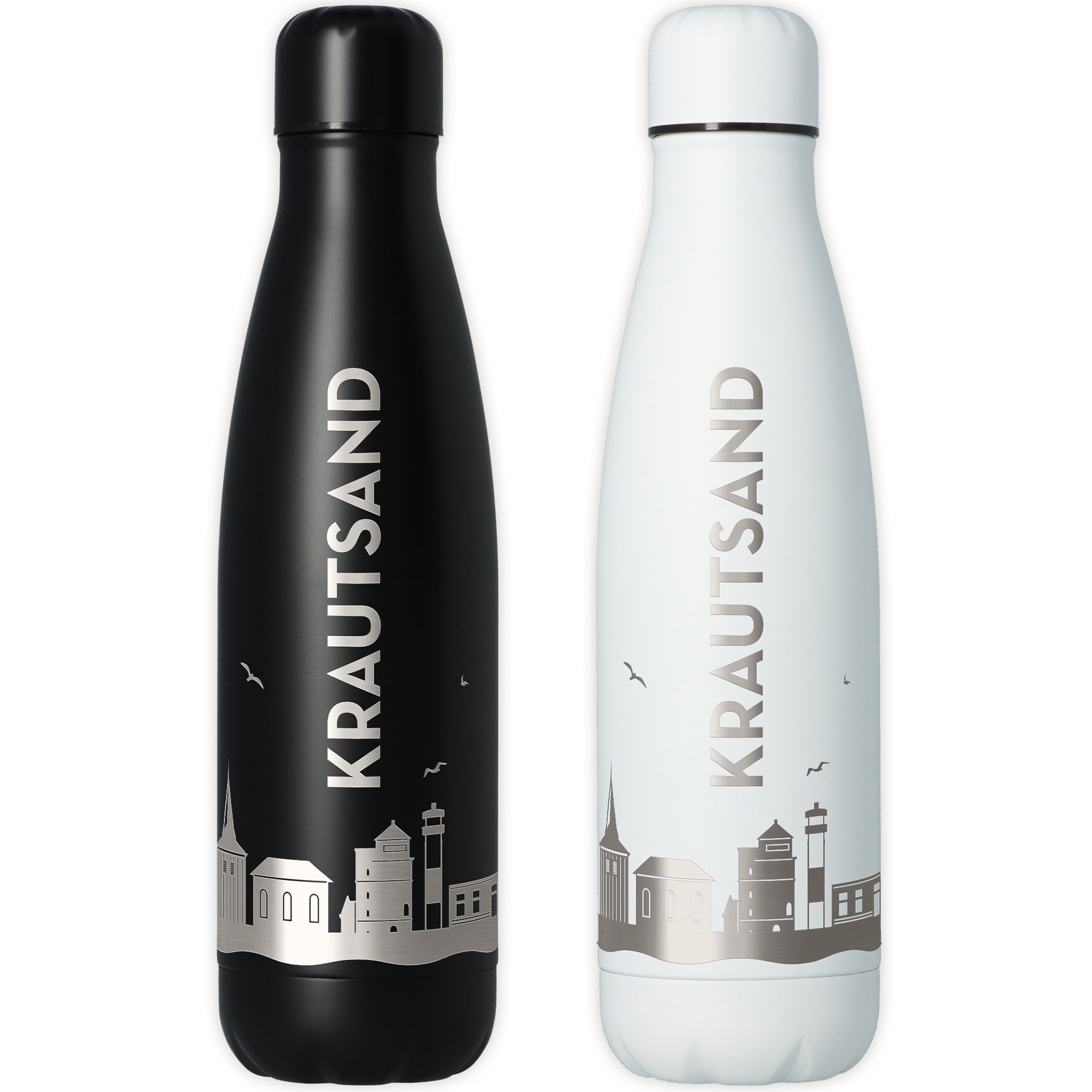 Mit unserer Trinkflasche aus hochwertigem Edelstahl, erlebt man den Flair der Stadt Krautsand den ganzen Tag über.