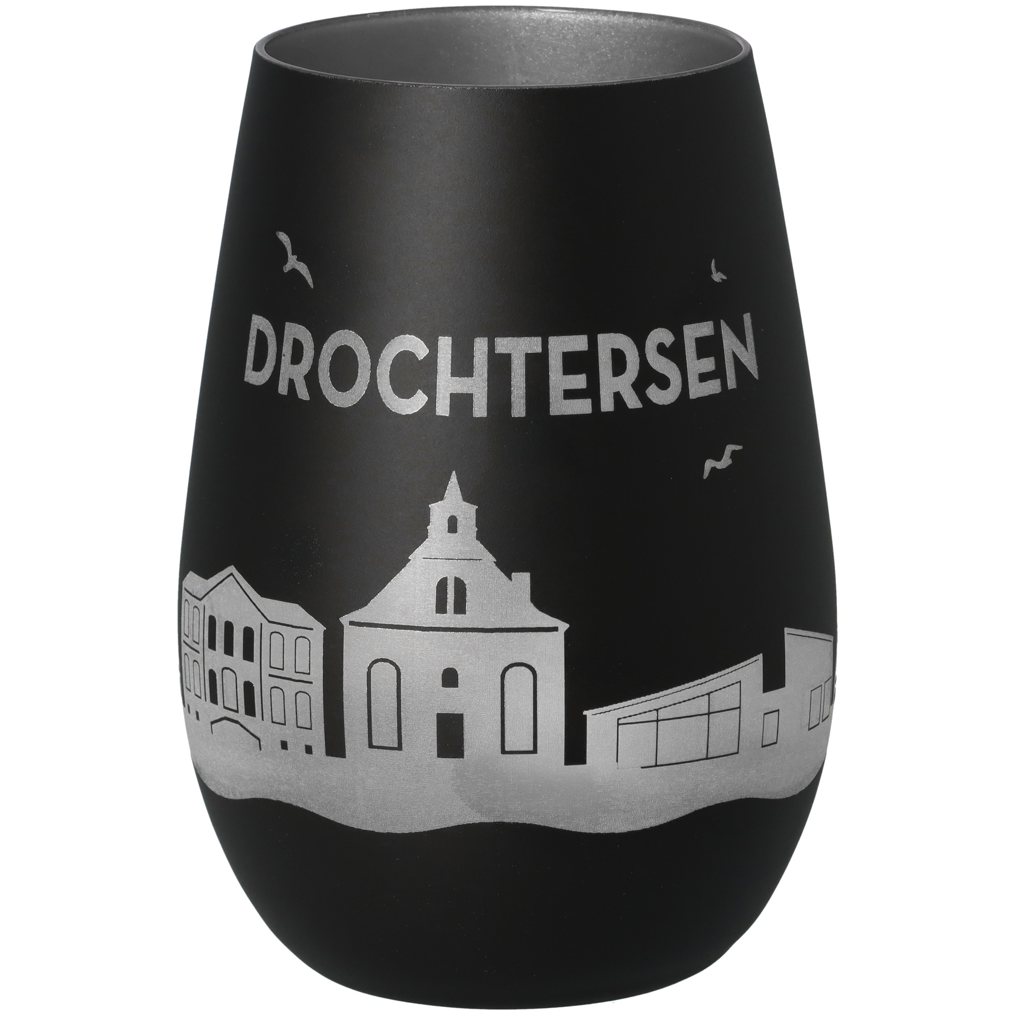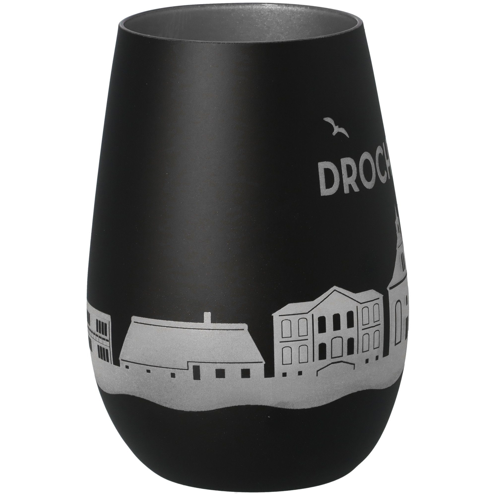 Die perfekte Geschenkidee ist unser Windlicht mit einer rundum Gravur von der Drochtersen Skyline, welche mit Kerzenlicht extra heraussticht.
