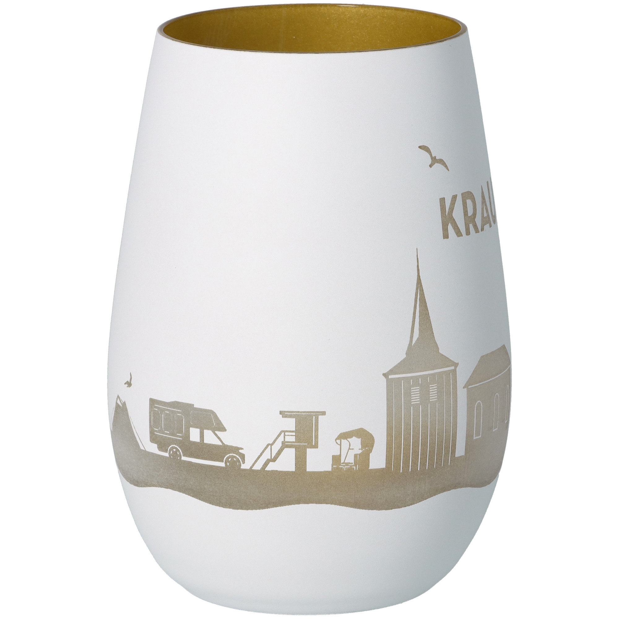 Die perfekte Geschenkidee ist unser Windlicht mit einer rundum Gravur von der Krautsand Skyline, welche mit Kerzenlicht extra heraussticht.