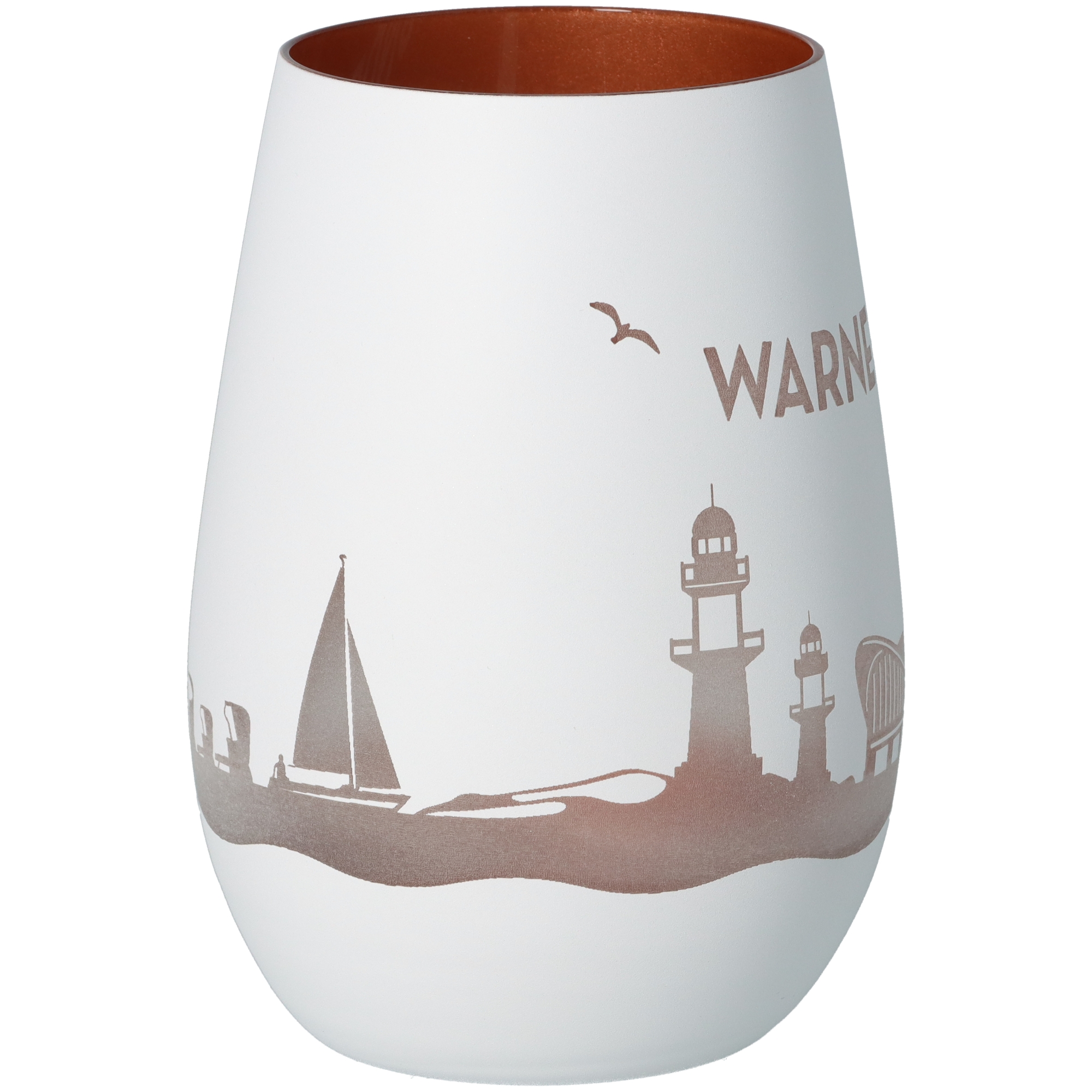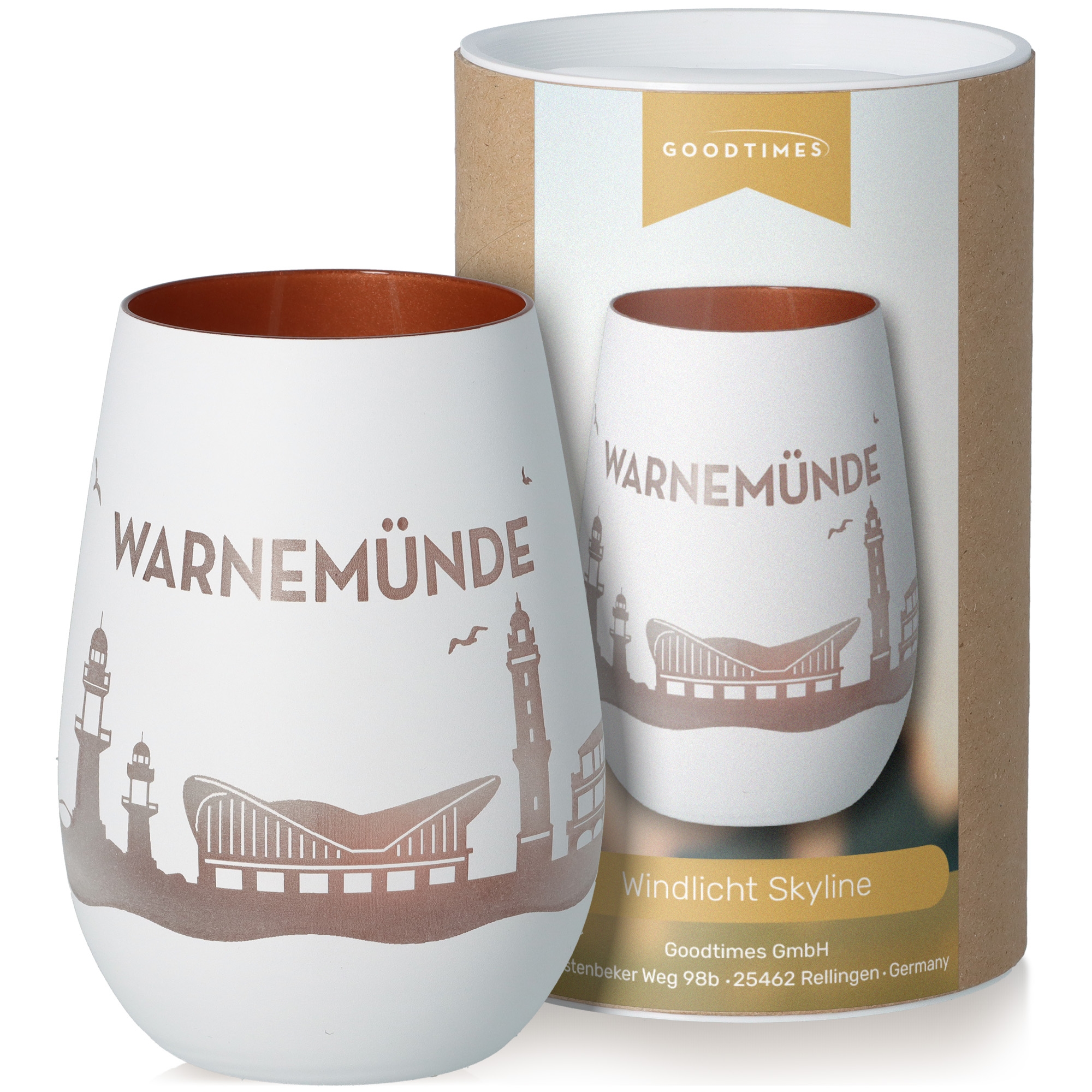 Unser stilvolles Windlicht bringt die Warnemünde Skyline direkt zu dir nach Hause. Die rundum Gravur lässt im Kerzenschein ein faszinierendes Spiel aus Licht und Schatten entstehen – ideal, um eine gemütliche Atmosphäre zu schaffen und Erinnerungen lebendig werden zu lassen.