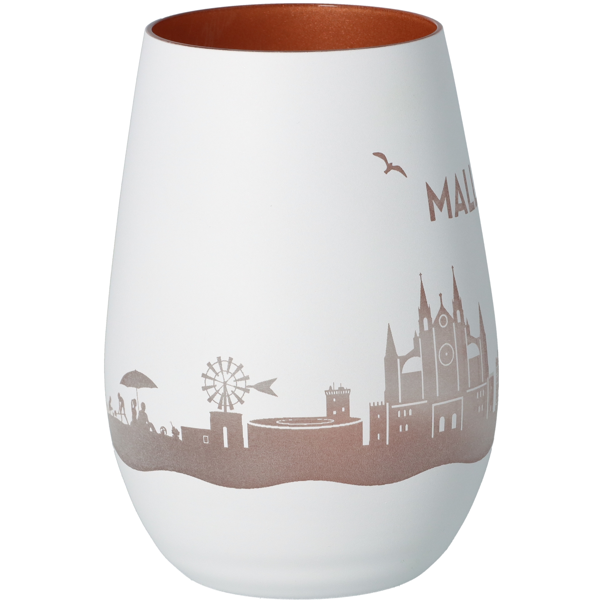 Unser stilvolles Windlicht bringt die Mallorca Skyline direkt zu dir nach Hause. Die rundum Gravur lässt im Kerzenschein ein faszinierendes Spiel aus Licht und Schatten entstehen – ideal, um eine gemütliche Atmosphäre zu schaffen und Erinnerungen lebendig werden zu lassen.