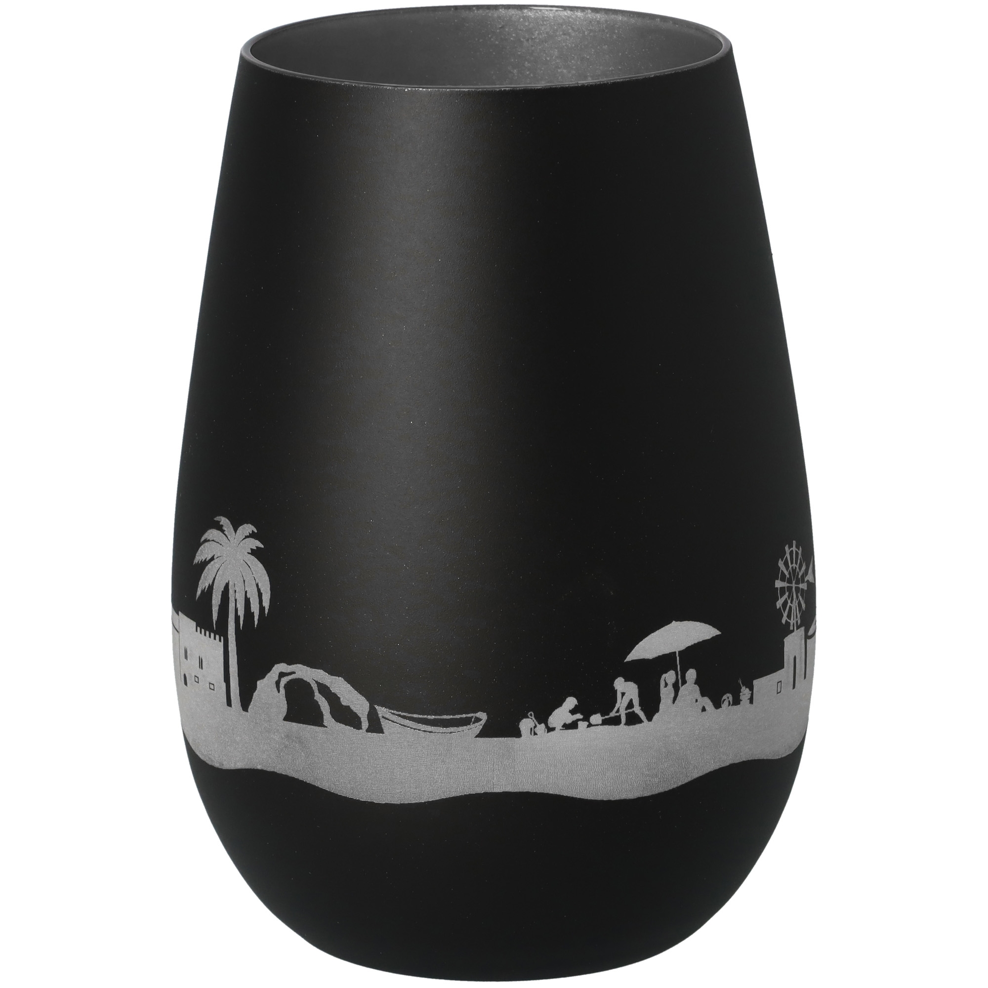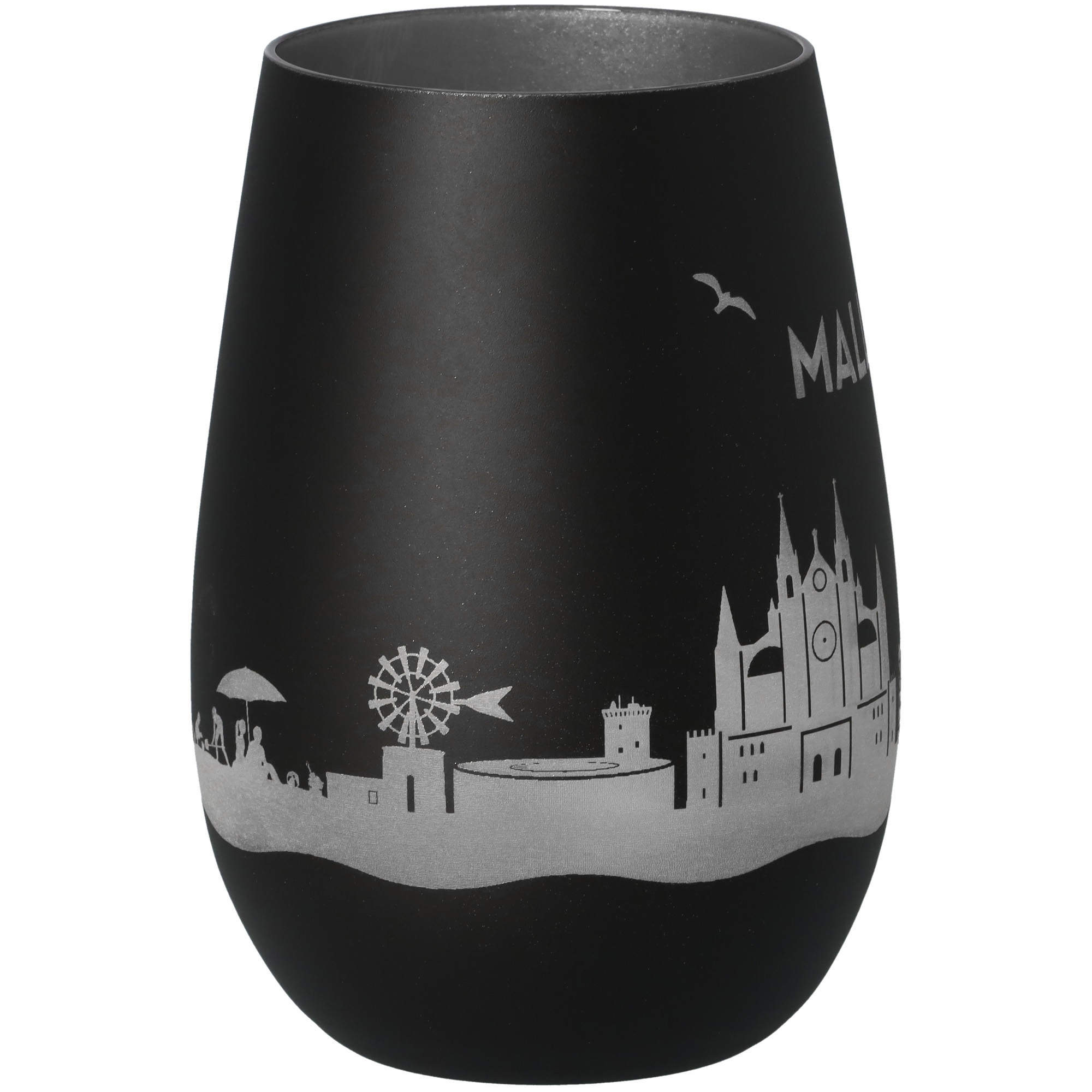 Unser stilvolles Windlicht bringt die Mallorca Skyline direkt zu dir nach Hause. Die rundum Gravur lässt im Kerzenschein ein faszinierendes Spiel aus Licht und Schatten entstehen – ideal, um eine gemütliche Atmosphäre zu schaffen und Erinnerungen lebendig werden zu lassen.