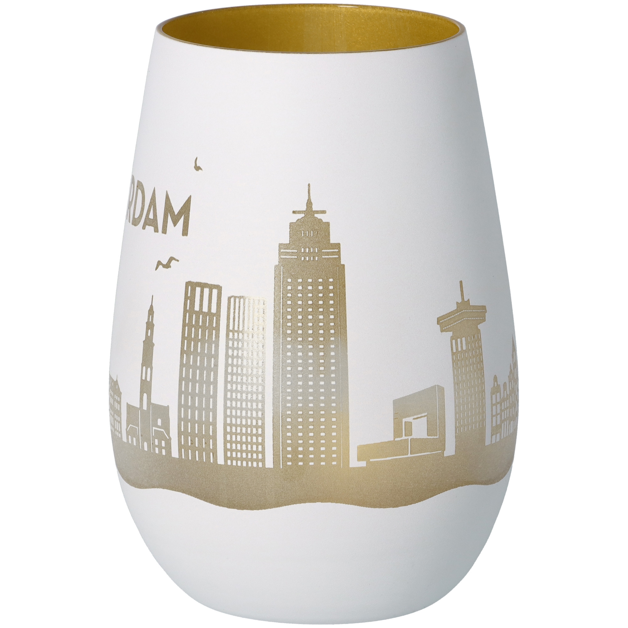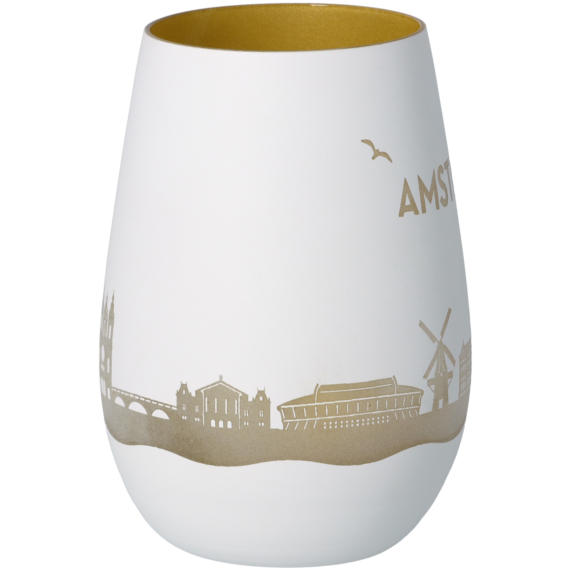 Unser stilvolles Windlicht bringt die Amsterdam Skyline direkt zu dir nach Hause. Die rundum Gravur lässt im Kerzenschein ein faszinierendes Spiel aus Licht und Schatten entstehen – ideal, um eine gemütliche Atmosphäre zu schaffen und Erinnerungen lebendig werden zu lassen.