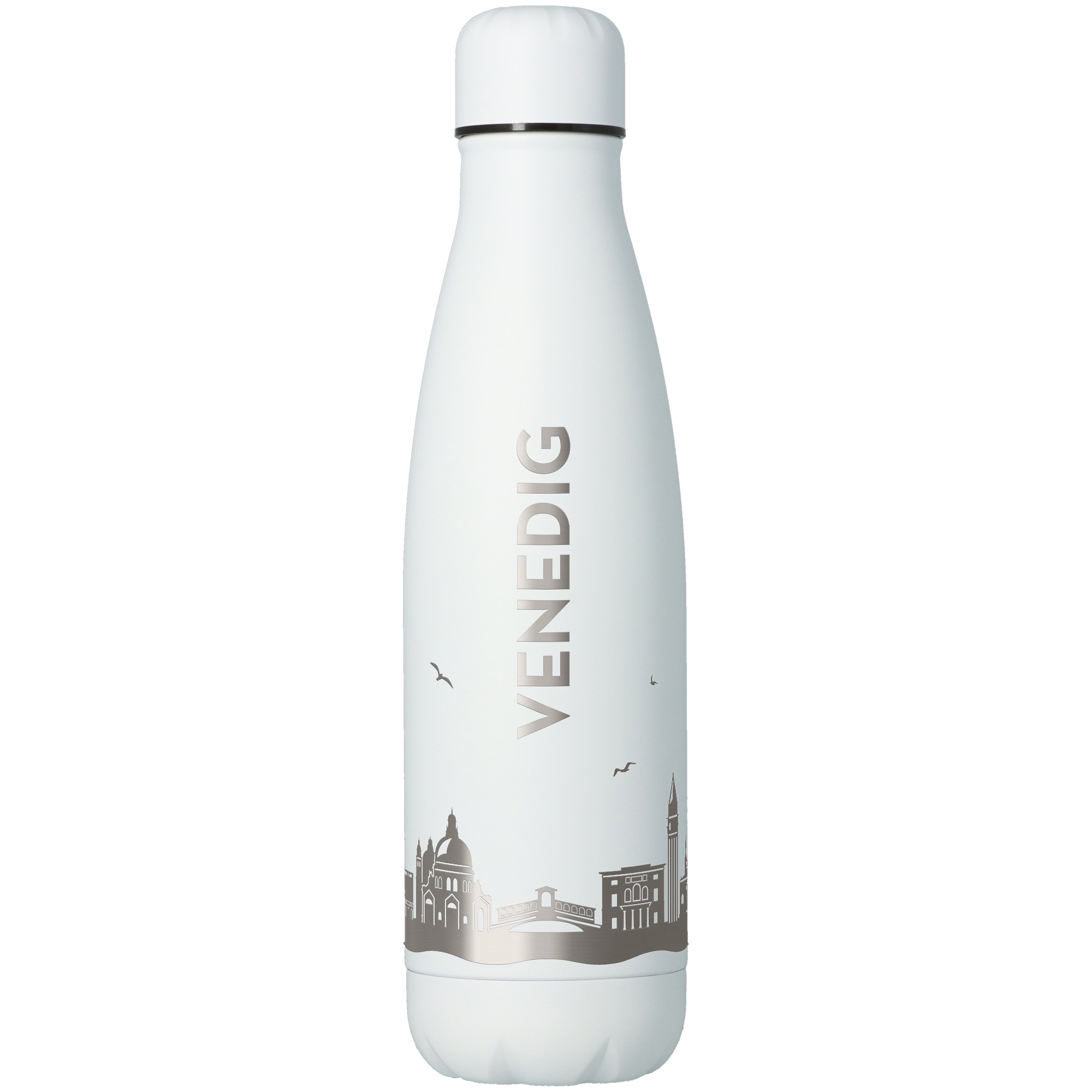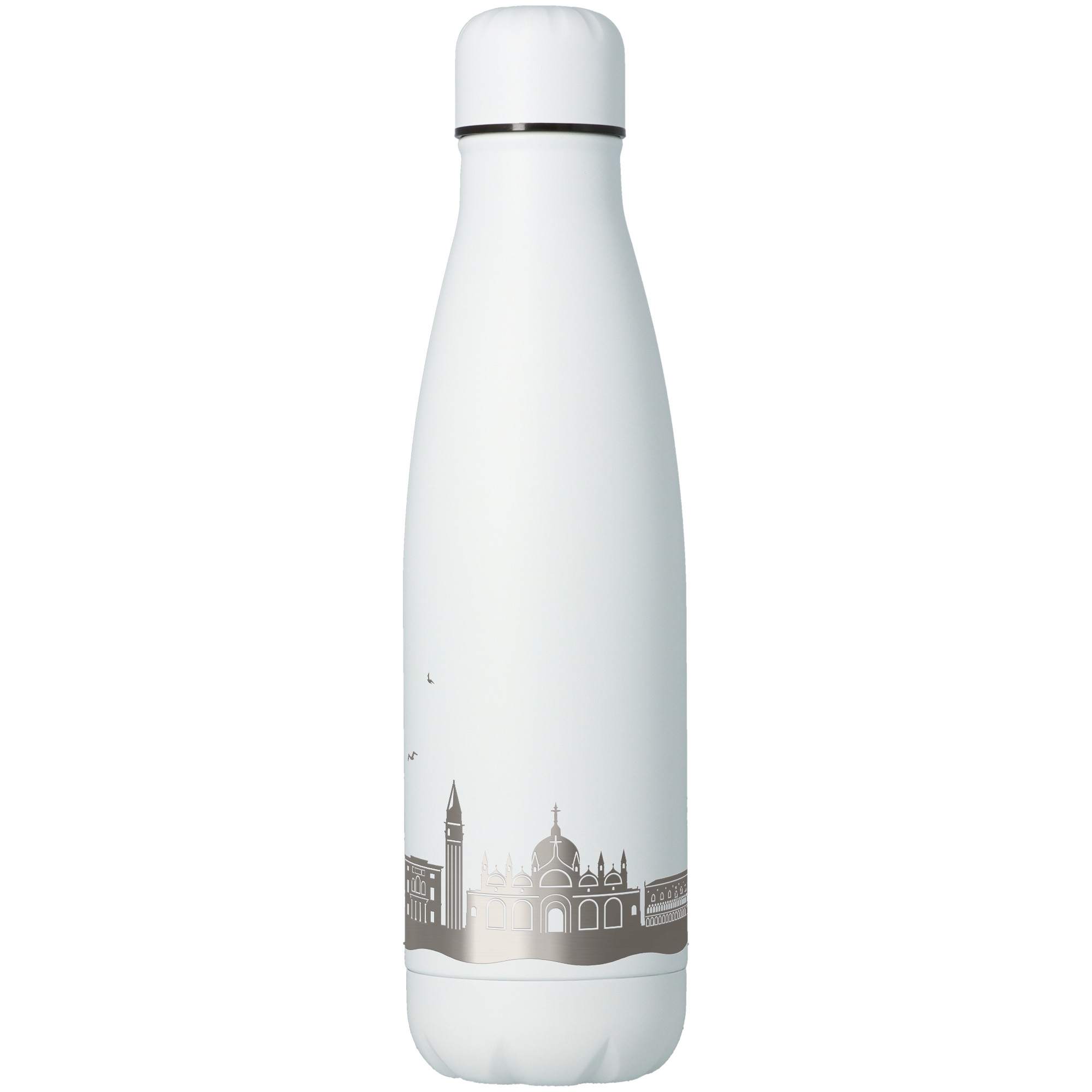 Unsere hochwertige Edelstahl-Trinkflasche mit rundum Gravur der Venedig Skyline ist der perfekte Begleiter im Alltag. Ob im Büro, beim Sport oder unterwegs - sie vereint Funktionalität mit einem besonderen Design.