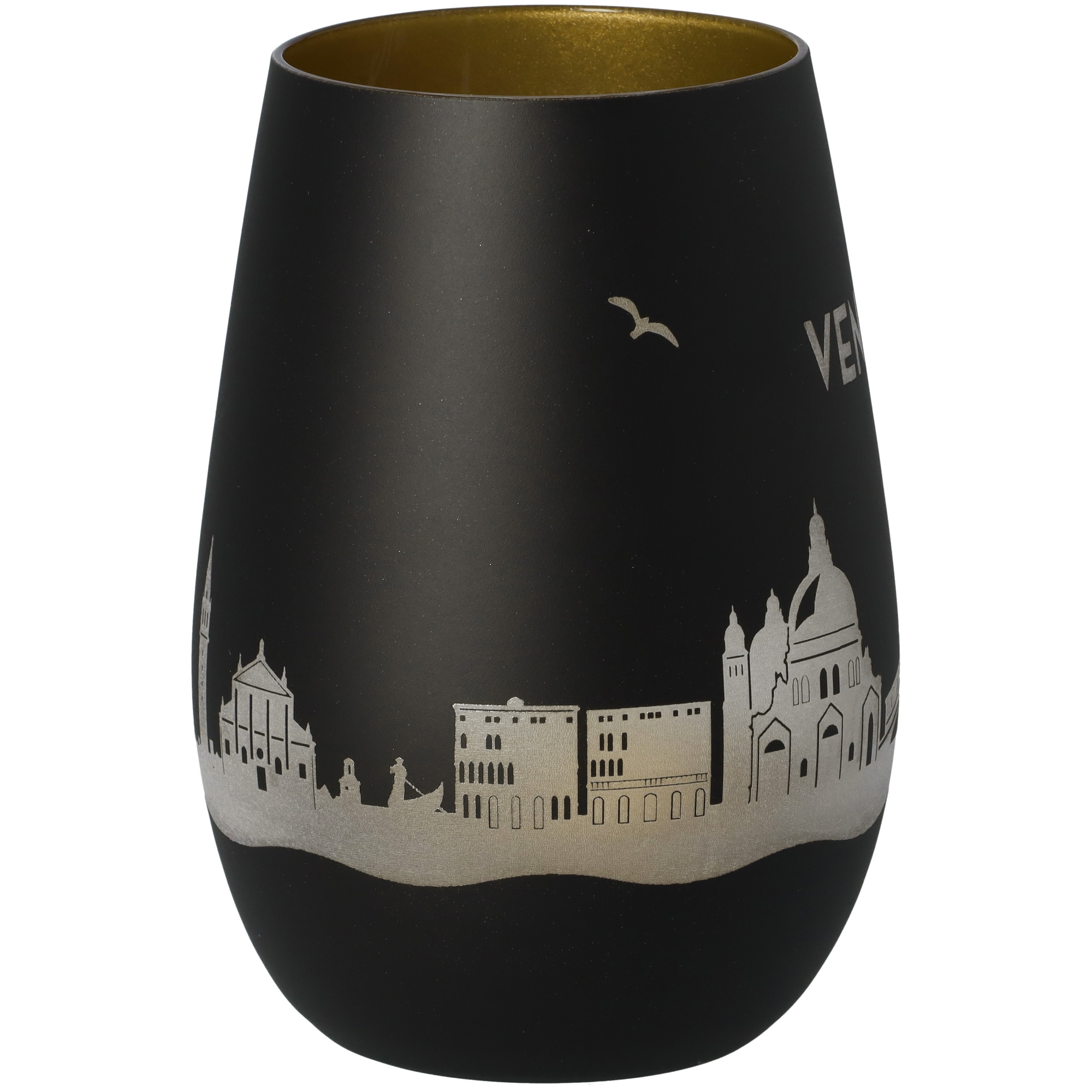 Unser stilvolles Windlicht bringt die Venedig Skyline direkt zu dir nach Hause. Die rundum Gravur lässt im Kerzenschein ein faszinierendes Spiel aus Licht und Schatten entstehen – ideal, um eine gemütliche Atmosphäre zu schaffen und Erinnerungen lebendig werden zu lassen.