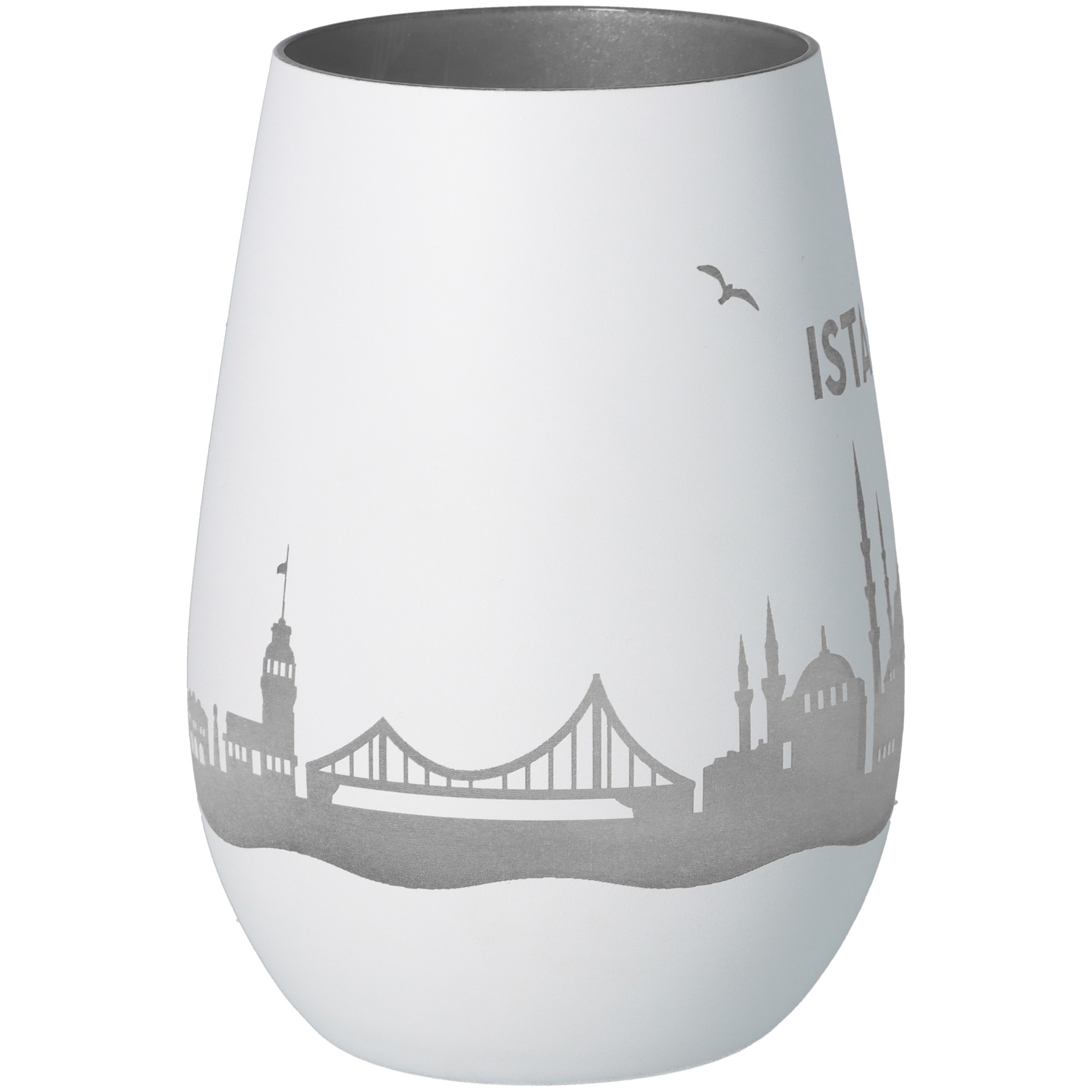 Unser stilvolles Windlicht bringt die Istanbul Skyline direkt zu dir nach Hause. Die rundum Gravur lässt im Kerzenschein ein faszinierendes Spiel aus Licht und Schatten entstehen – ideal, um eine gemütliche Atmosphäre zu schaffen und Erinnerungen lebendig werden zu lassen.