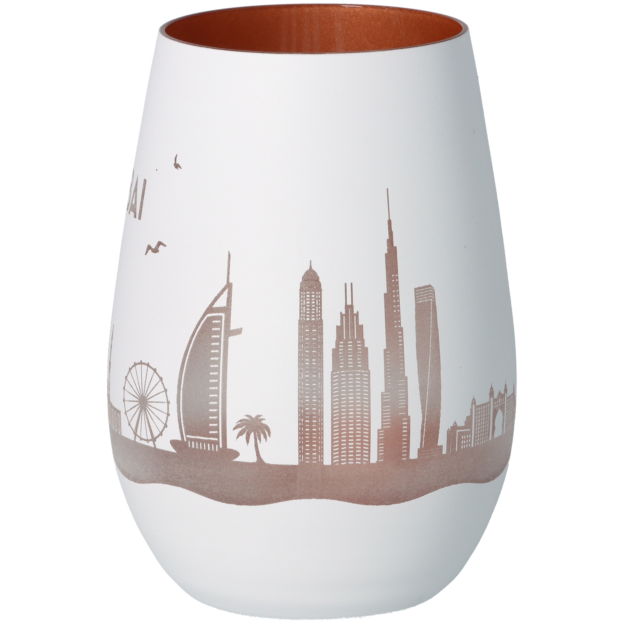 Unser stilvolles Windlicht bringt die Dubai Skyline direkt zu dir nach Hause. Die rundum Gravur lässt im Kerzenschein ein faszinierendes Spiel aus Licht und Schatten entstehen – ideal, um eine gemütliche Atmosphäre zu schaffen und Erinnerungen lebendig werden zu lassen.