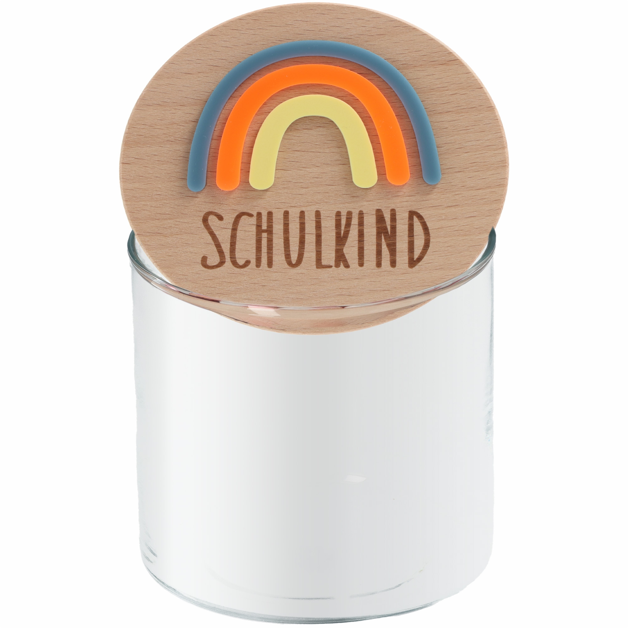 Schulkind-Glas mit Holzdeckel & Regenbogen