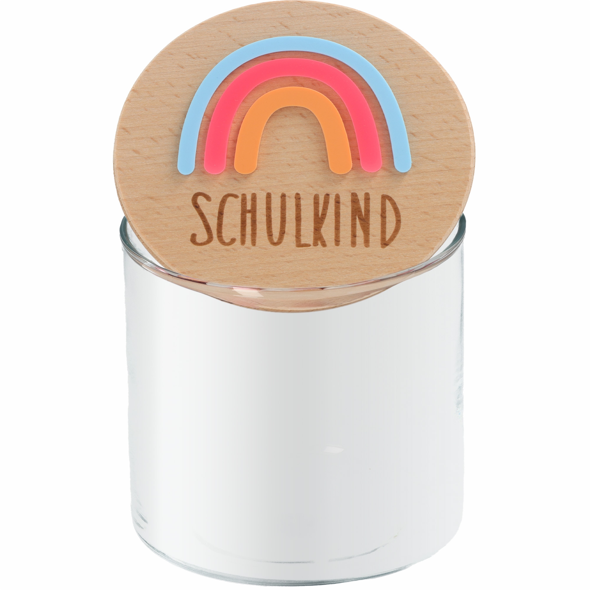 Schulkind-Glas mit Holzdeckel & Regenbogen