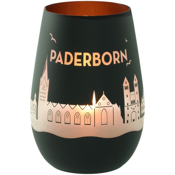 Die perfekte Geschenkidee ist unser Windlicht mit einer rundum Gravur von der Paderborn Skyline, welche mit Kerzenlicht extra heraussticht.